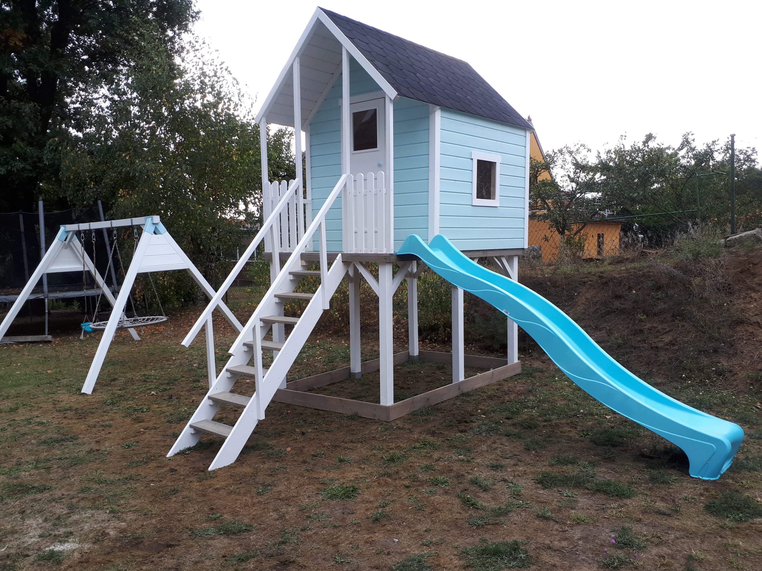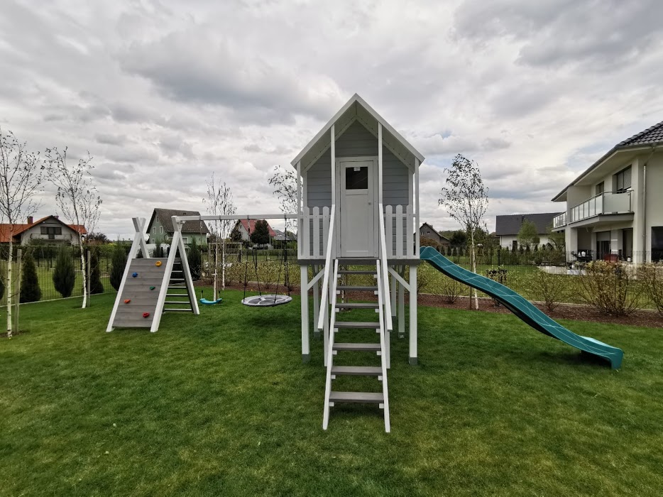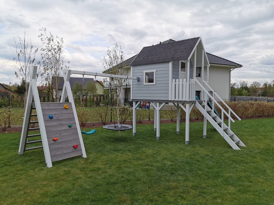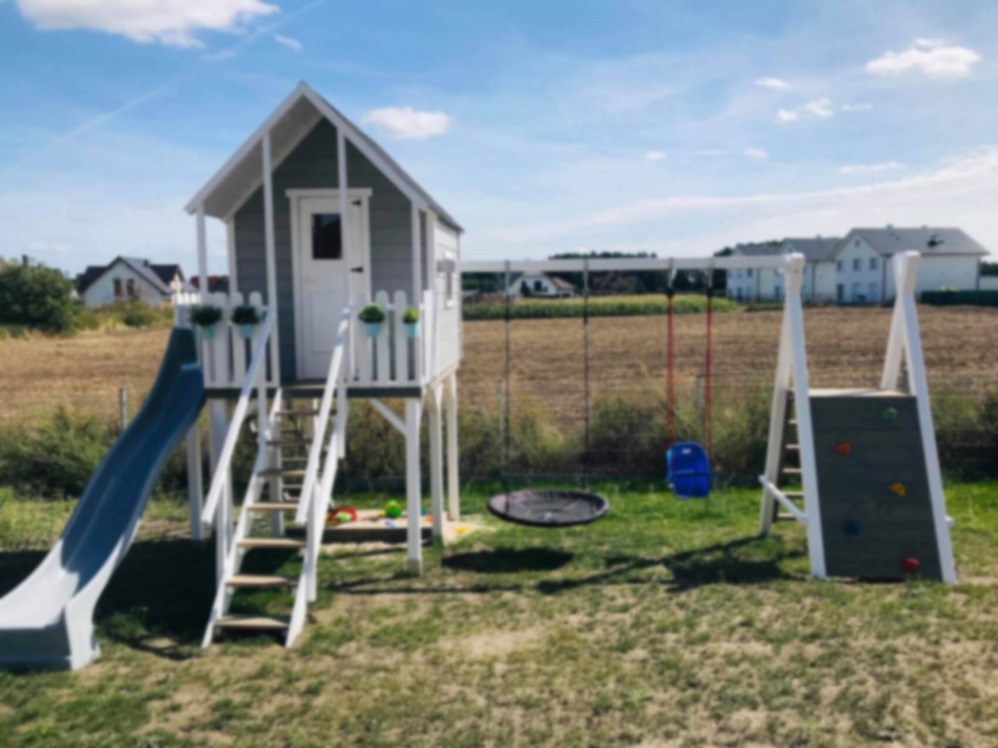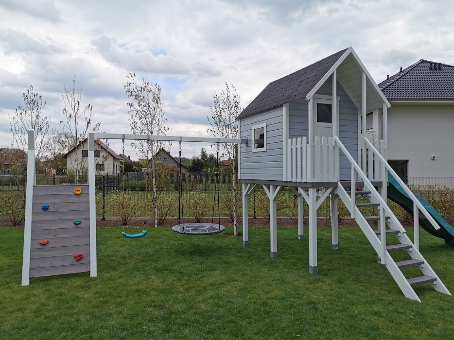 Domek można dowolnie rozszerzyć o zestaw z huśtawką lub huśtawką ze ścianką wspinaczkową.