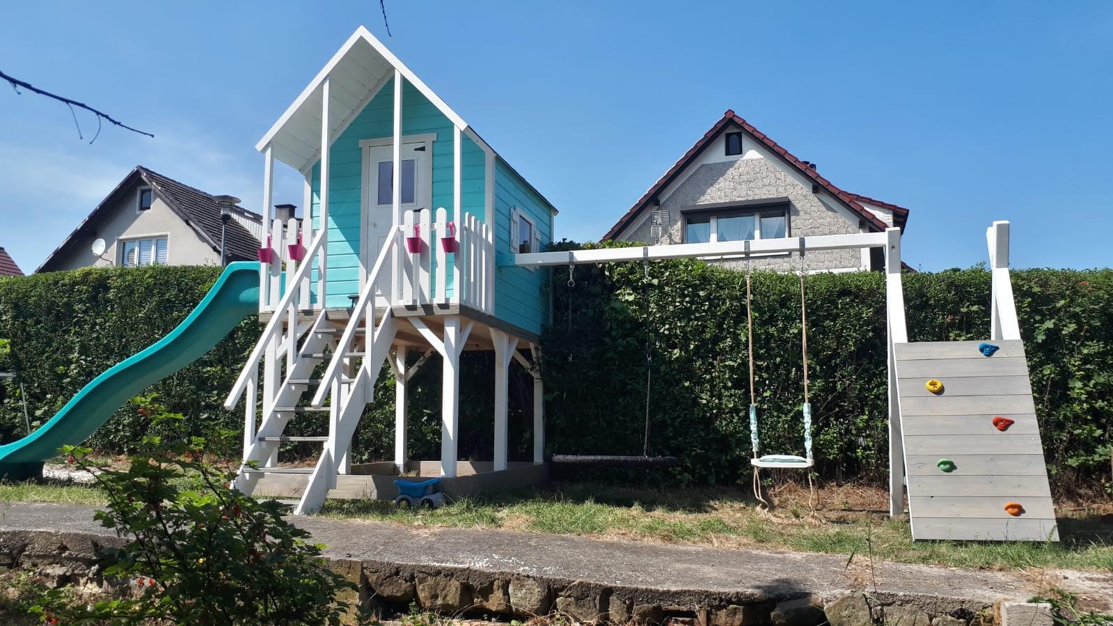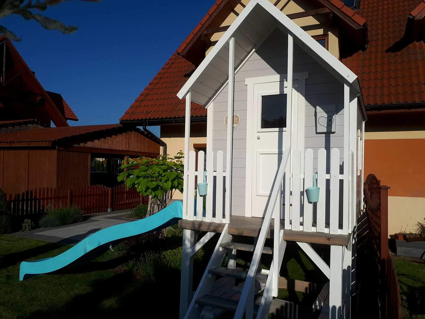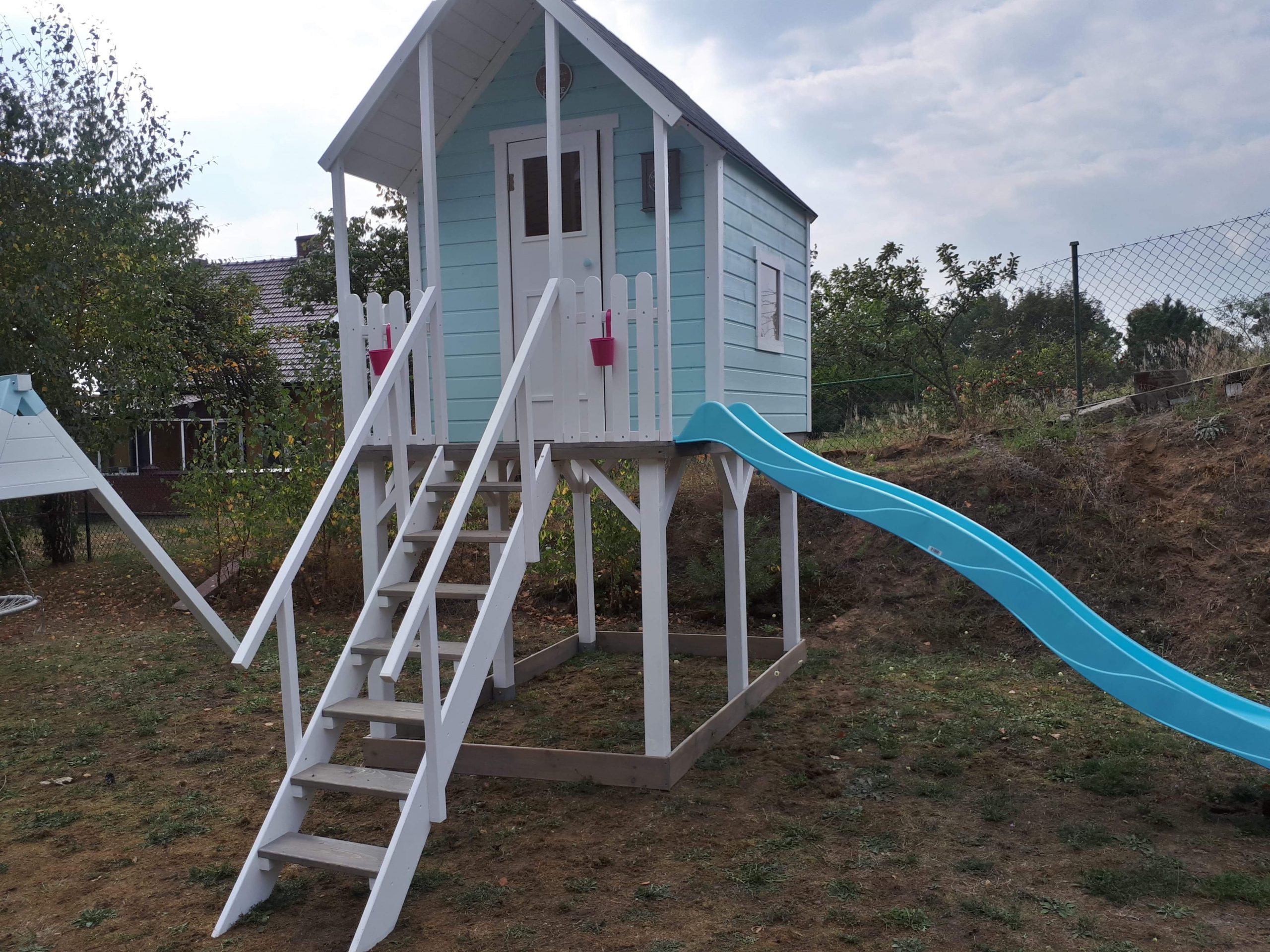 Domek można dowolnie rozszerzyć o zestaw z huśtawką lub huśtawką ze ścianką wspinaczkową.